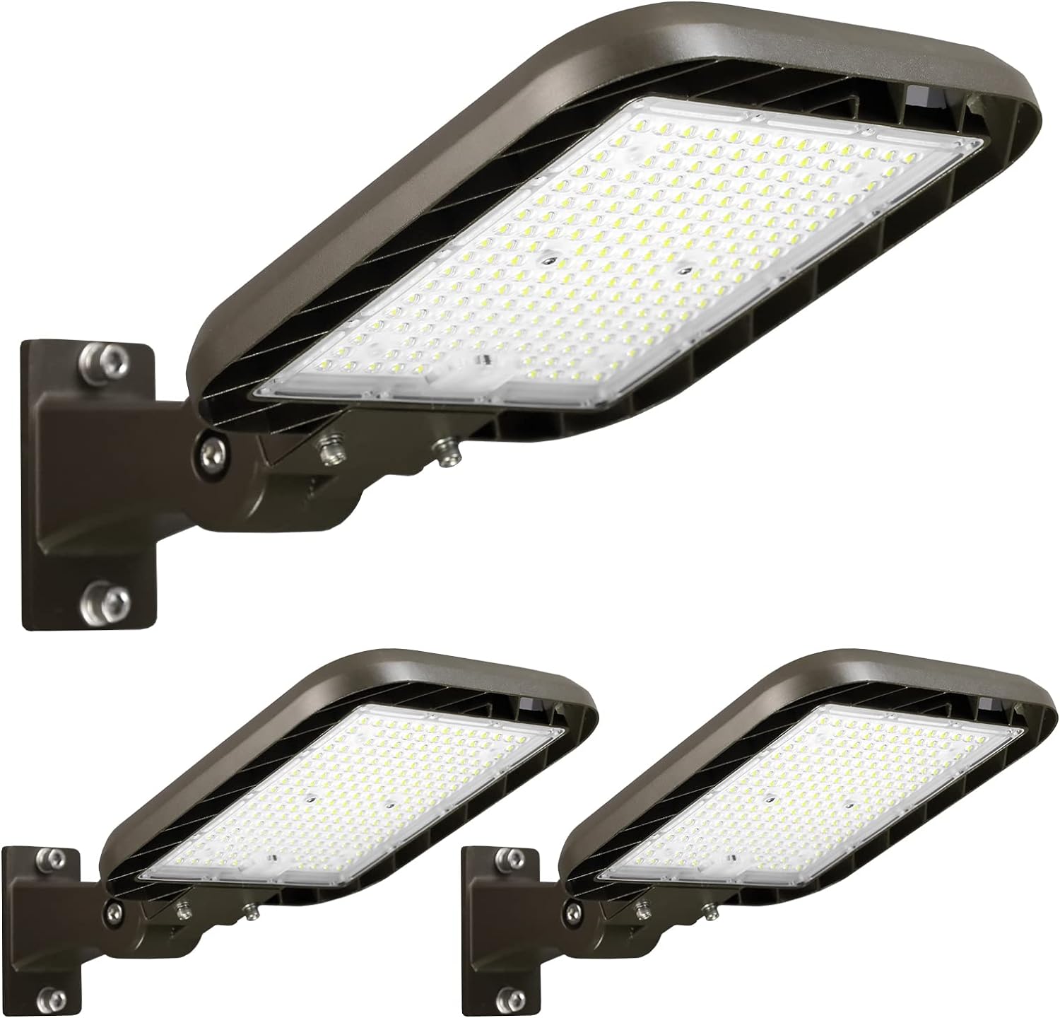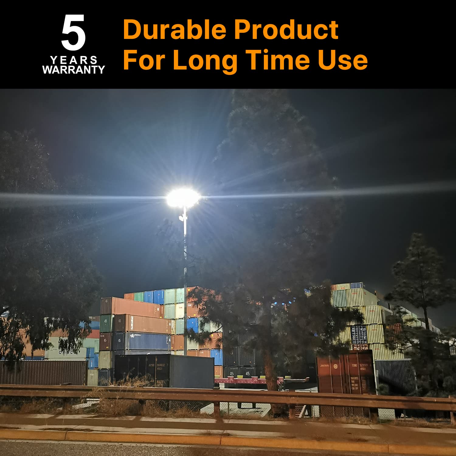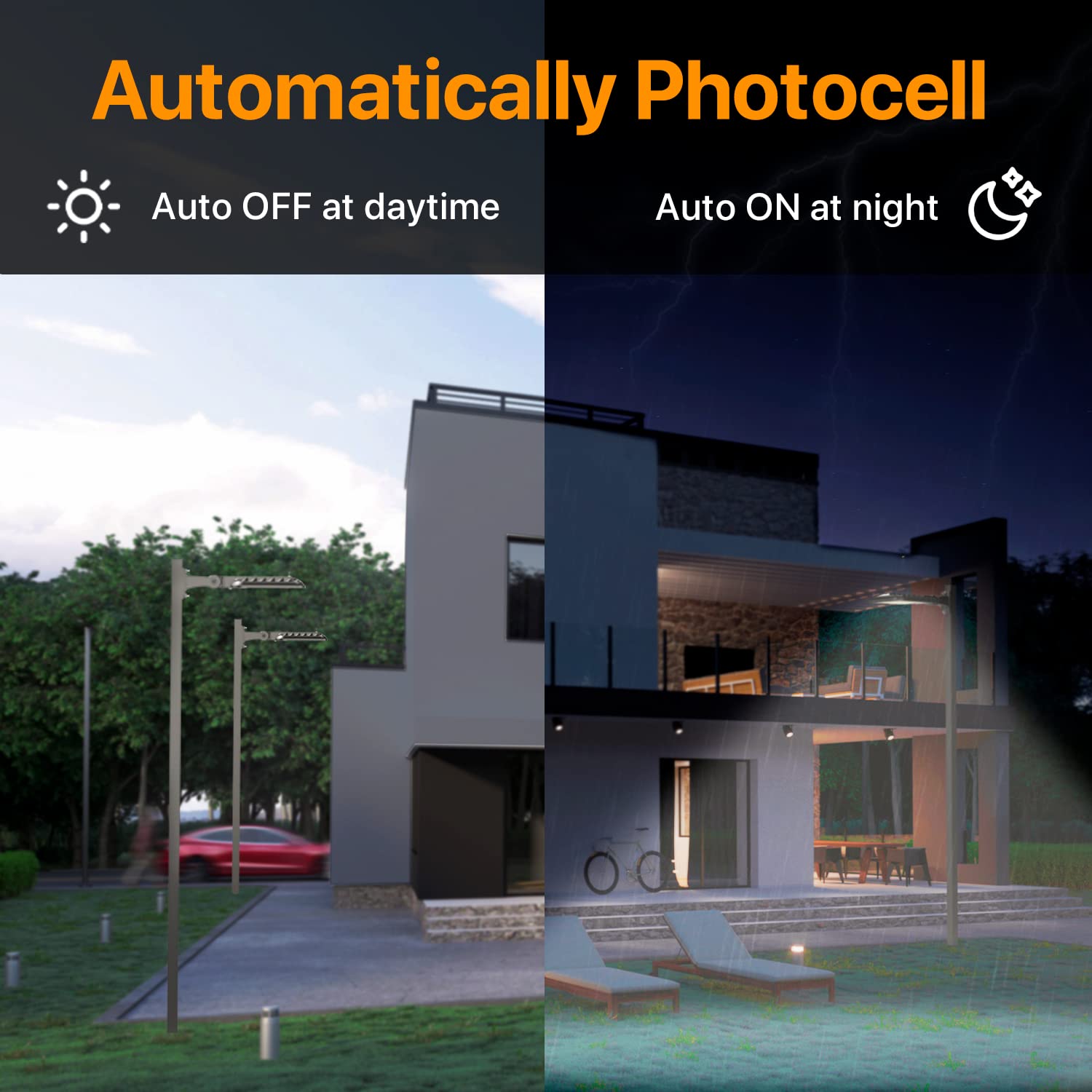 - High Efficiency: This parking lot light provides 22500 lumen output. Compared with the other outdoor light fixture, 150lm/w high efficiency of this dusk to dawn light save energy and lighting cost. Solid material and casting craft make the pole lights durable, it's commercial area lighting for your yard, barn and parking lot.