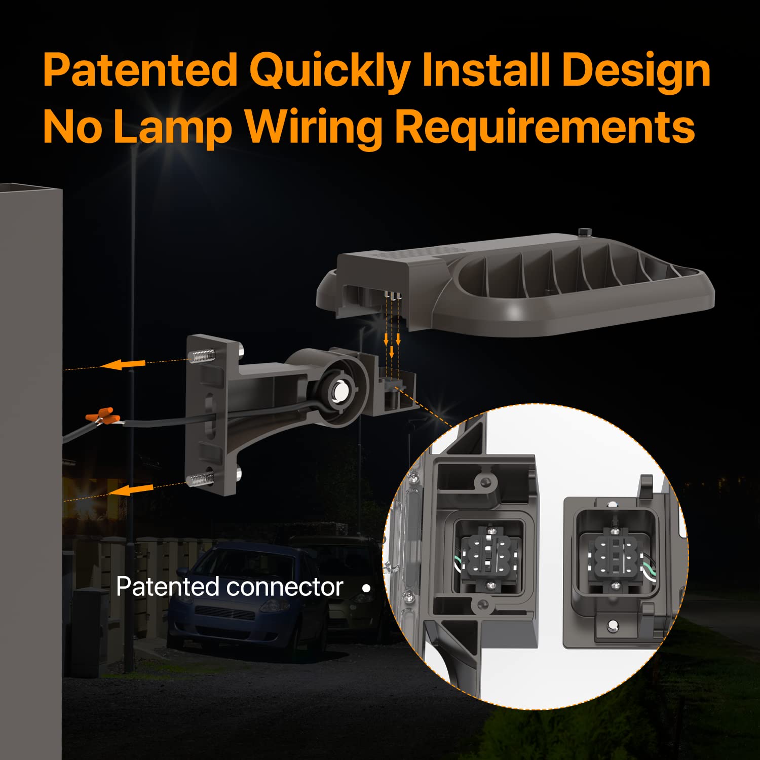 - Fast Installation: A real time and effort saver. Different from the other shoebox lights. DEMILARE design make installation safe and easy. Without wiring on the lamp body, install in 5 minutes. High efficiency and easy installation, this street area lighting can be used as security light and flood light for yard, house and driveways.